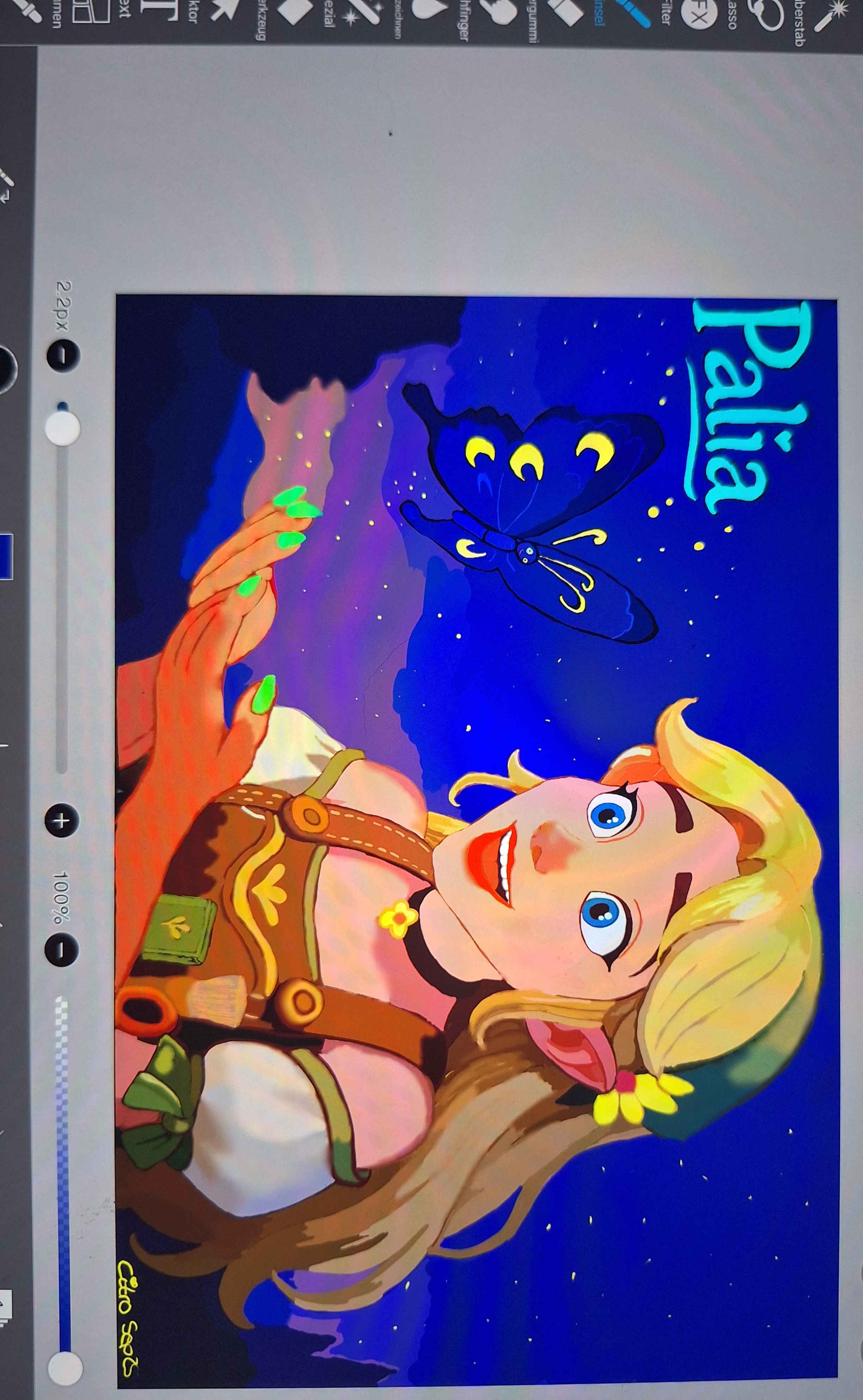 Una mariposa crepuscular alza el vuelo en Kilima. Sus alas llevan el resplandor entre la noche y el sueño. Tamala se maravilla, con los ojos llenos de encanto, como si fuera una criatura de magia ancestral. Trish la adora, como si fuera de oro, y Tamala también, porque en cada aleteo descansa un trocito de infinito. En Kilima, bajo el manto de estrellas, una mariposa se convierte en el misterio más hermoso. 6h ¡Pintado! Espero que te guste